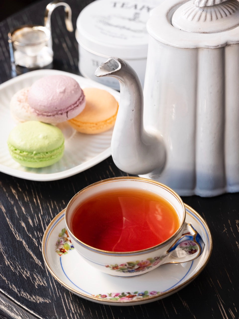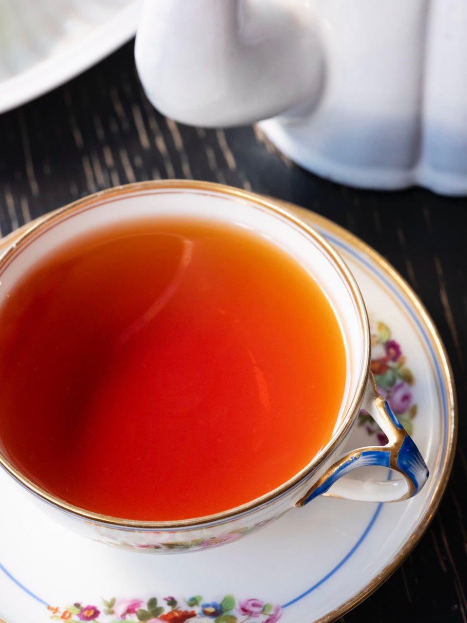所々に芯芽と緑がかった茶葉が混ざったリーフは、熱湯を注ぐと、やがて落ち着いたブラウンの茶液に。一口飲み込むと優しい蜜のような、甘く艶を感じる口当たりと、ウッディーで落ち着きのある香りが溶け合う味わいが魅力の銘柄です。
