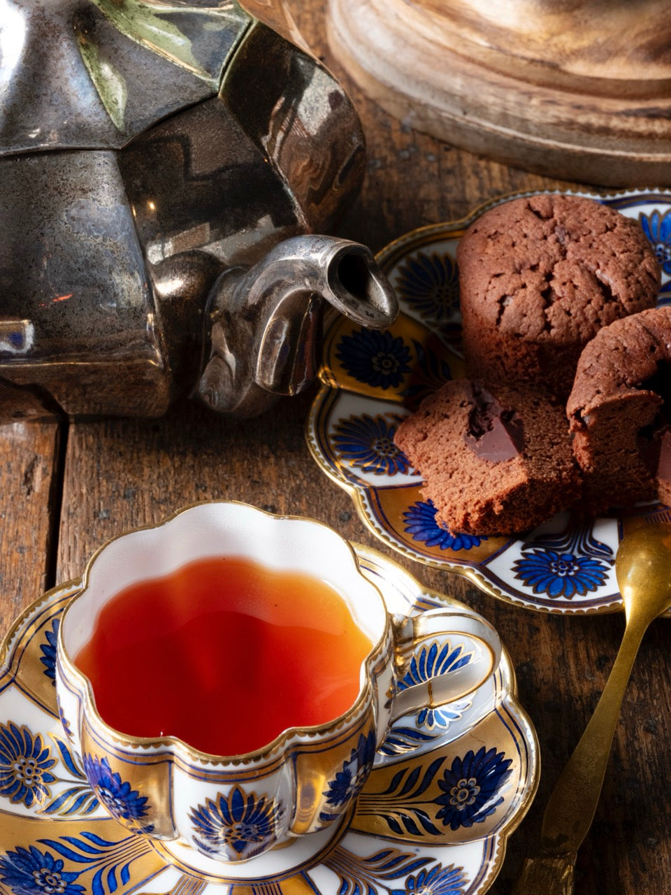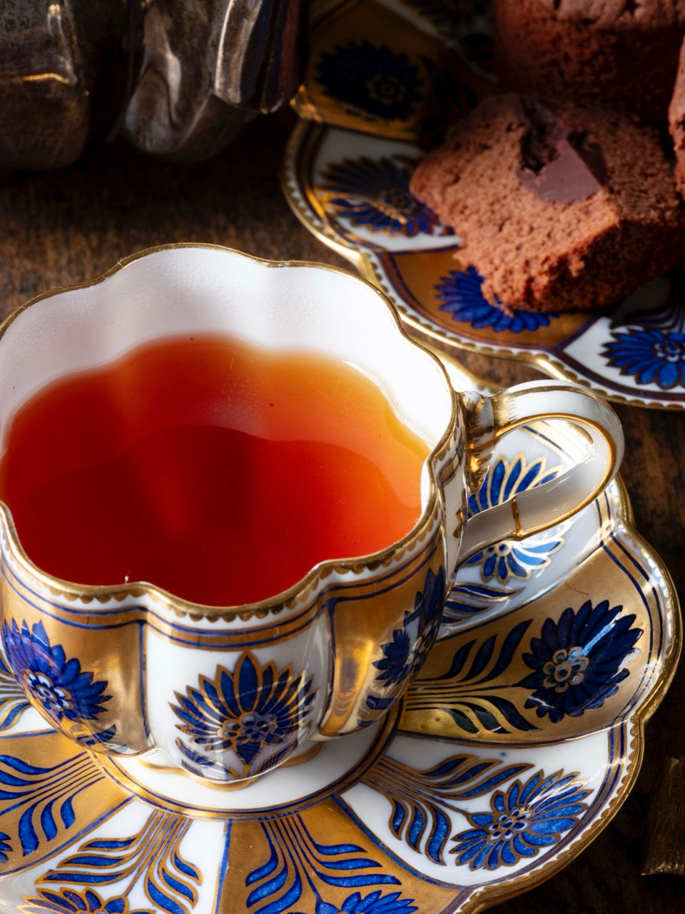 カカオブラウンの茶葉は、お湯の中で優雅に舞い、セピア色の茶液が美しい一杯となります。