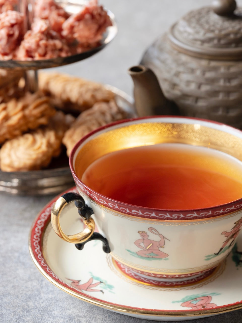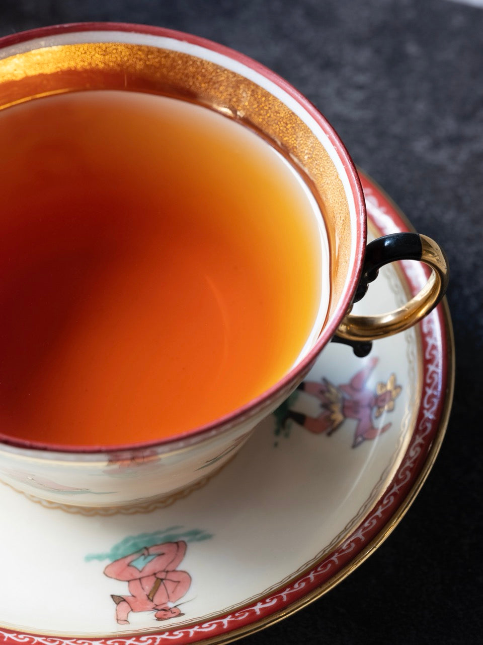 ゴールデンティップを含んだ茶葉から抽出される栗色の水色 。ナッツのような香りに重なる、後味に感じる甘みとカカオのようなほどよい重さの心地良い渋みがひとつになって、ホッと穏やかで落ち着く味わいです。