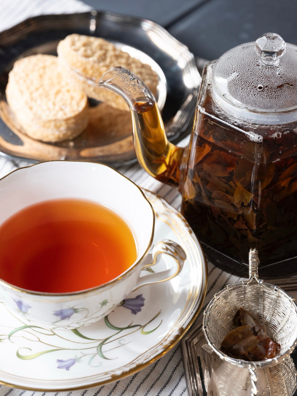 シルバーティップを含んだ細長く撚れた茶葉は、お湯の中で優しく広がり、若々しく軽やかで穏やかな口当たりの一杯に。立ち上る香りは、まだ枝に残る色づいた紅葉のようなボタニカルな印象ながら、甘く落ち着いた香り立ち。どんな時間帯のティータイムにも寄り添い、心を解きほぐしてくれるオータムナル ダージリンです。