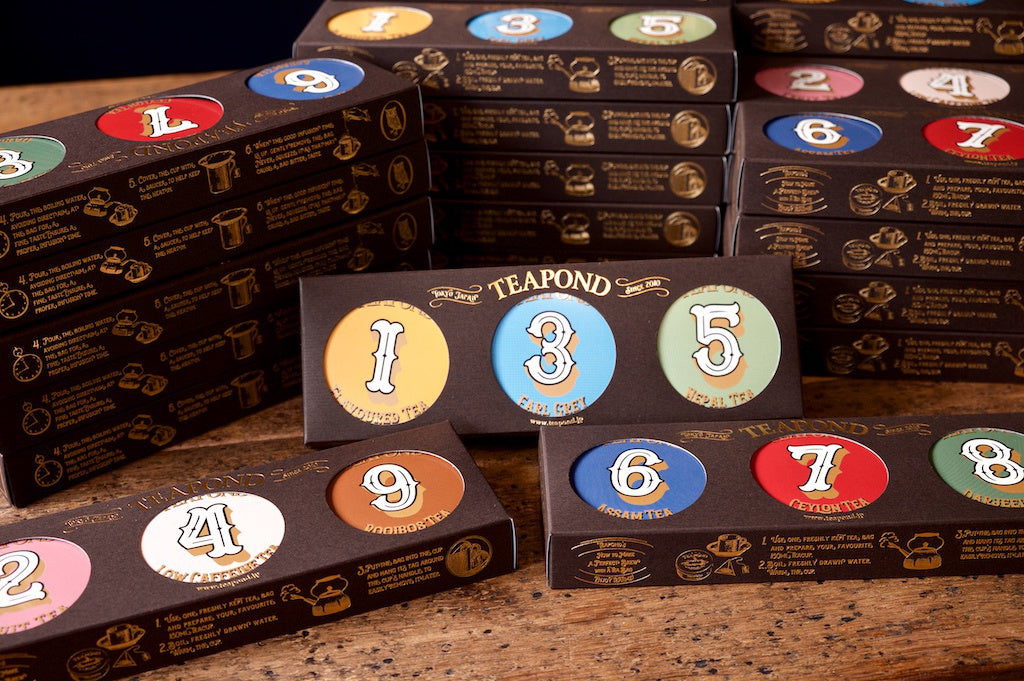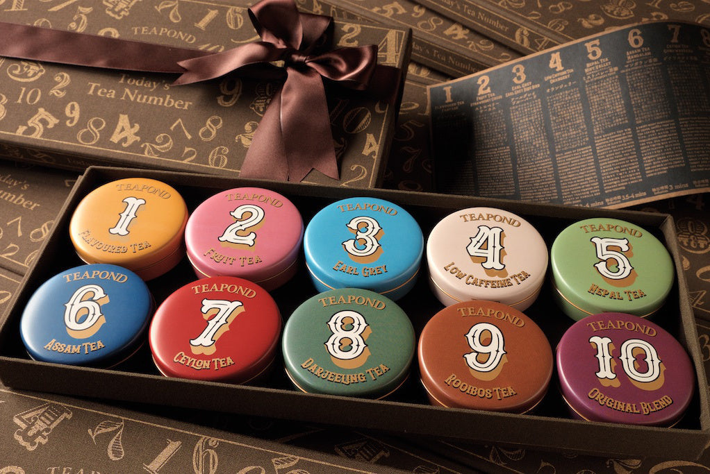 Inside the palm-sized colorful tins with motifs of numbers from 1 to 10, teas with different characteristics such as single origin teas, flavored teas, and fruit teas are stored.