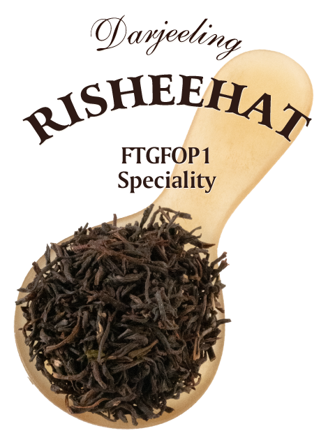 Risheehat Tea Estate, which derives its name from the house of saints (Rishee-Saints, Hat-Home), is located in the Darjeeling East Area and started its history around 1860 in the hands of the British. Most of the compact site of 141 hectares is an east-facing tea plantation on a steep slope. The second flush produced is renowned for its unmatched muscatel flavor. Tea is made in a tea factory jointly with the adjacent Liza Hill Tea Estate, and Risheehat Tea Estate mainly produces tea from Chinese tea plants. It is one of the few tea gardens that has succeeded in achieving both quality and production volume using organic farming methods, and it is also a leader in the surrounding tea gardens that are also working to grow tea plants organically.