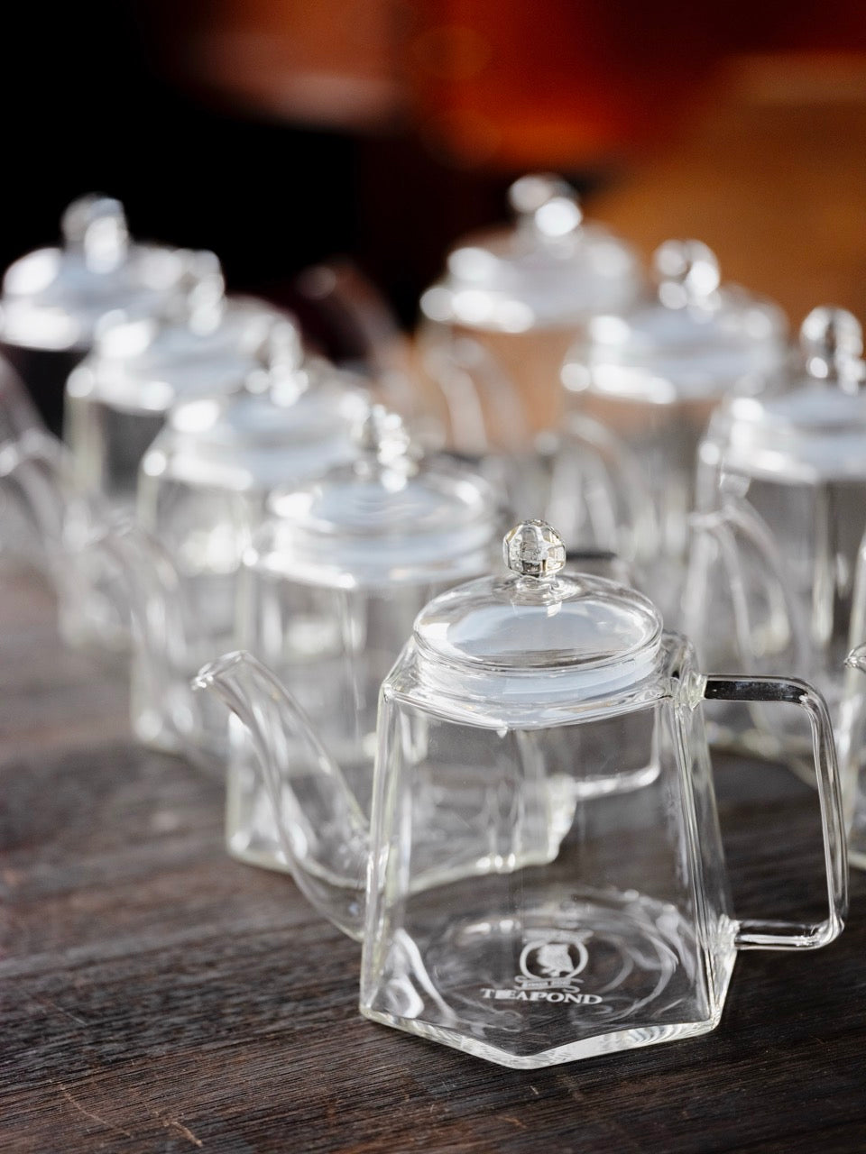 This stylish hexagonal glass teapot has a linear shape, but also exudes an oriental feel. Its ease of use means it can be coordinated with both modern and traditional tea utensils.
