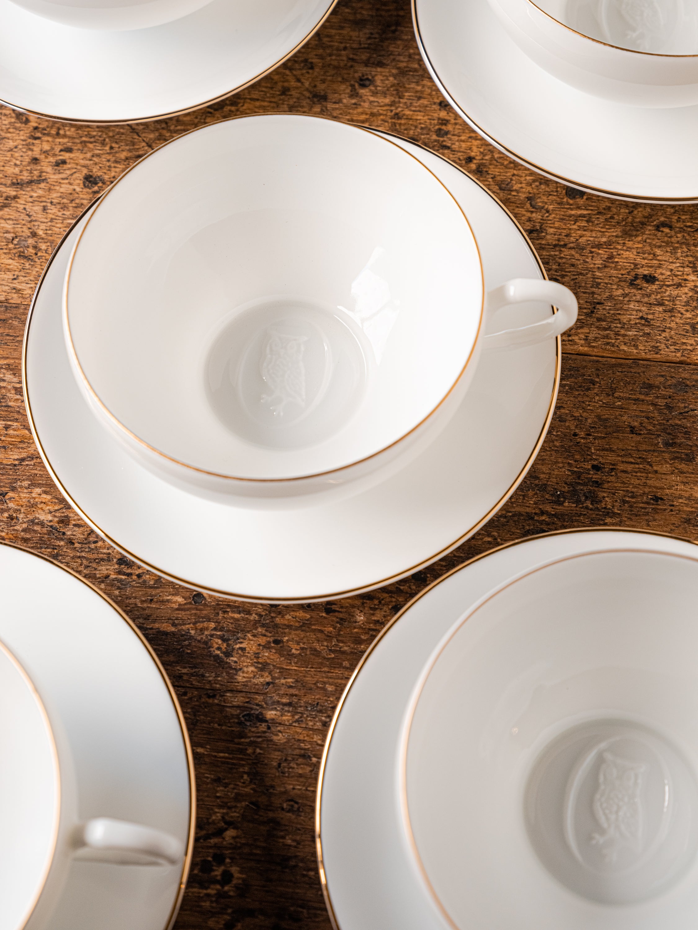As our original, we kept the rounded form and delicate thinness as it is, and finished it simply with a gold line on the edge so that it would blend in with your daily tea time. Furthermore, after drinking the tea, if you hold the light up, the relief of the owl will emerge from the bottom of the cup.